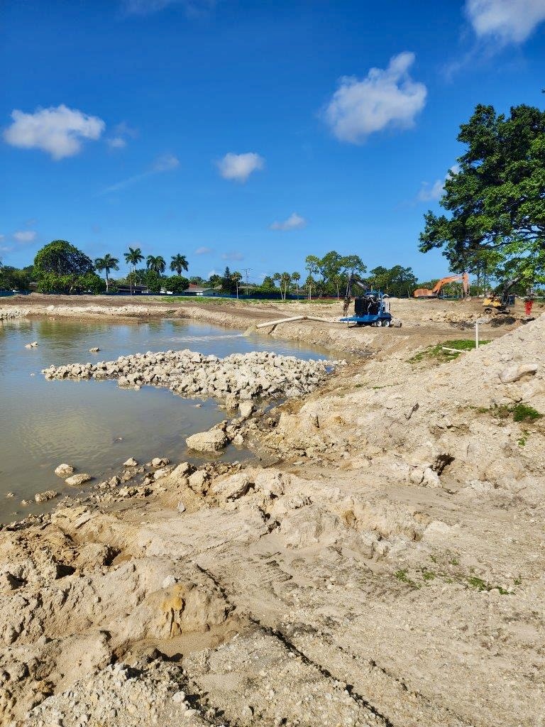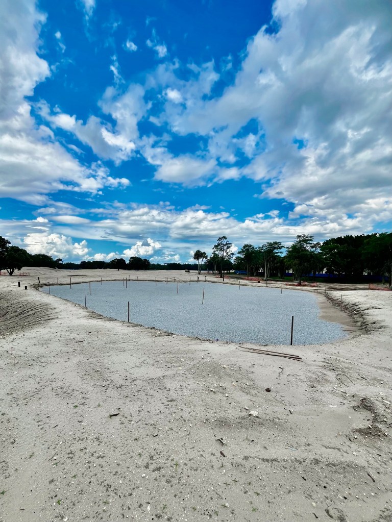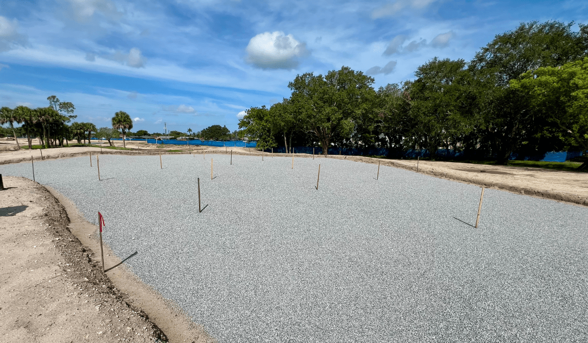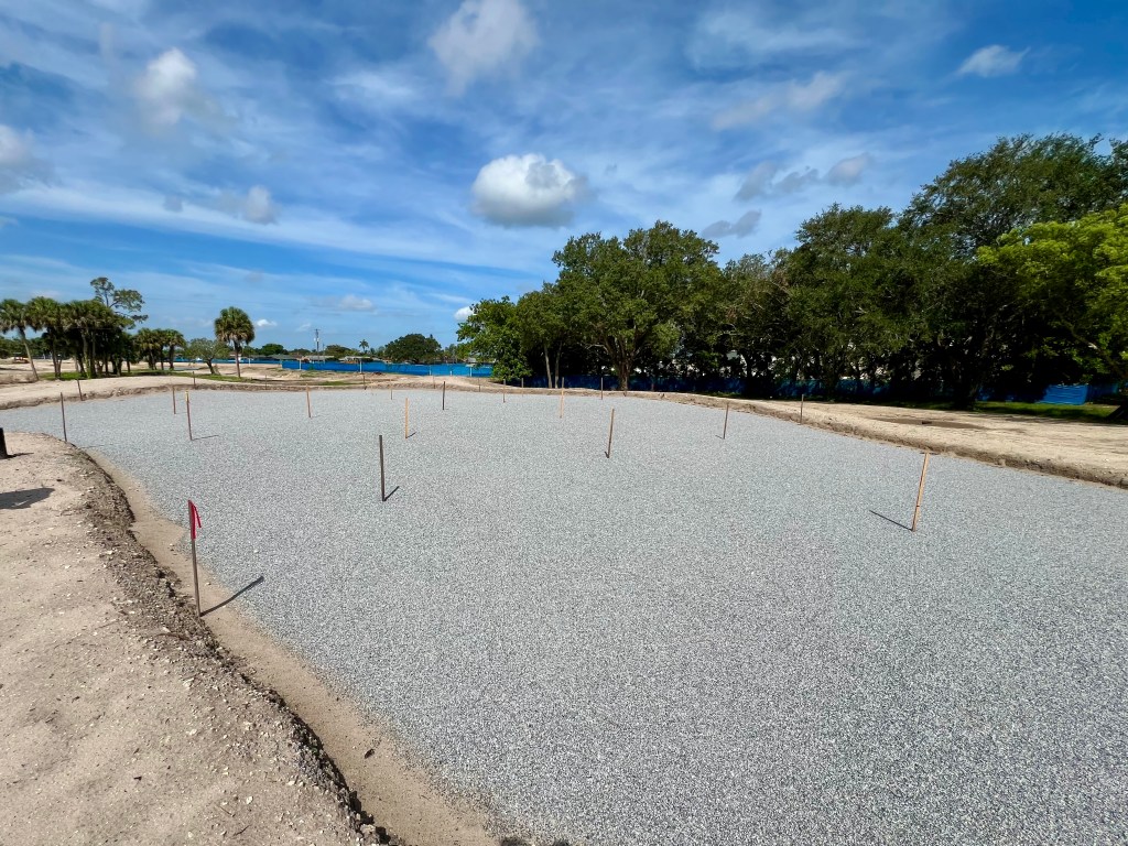 Additionally, consistent with United States Golf Association (USGA) specifications, a gravel blanket has been installed on putting green 6. While Southwest Florida’s native soil is naturally sandy and encourages drainage, the gravel layer provides a stable foundation for the sand root zone which will go above the gravel layer, helping to preserve the green’s shape and structural integrity over time. It also enhances overall drainage efficiency by allowing water to move quickly from the sand layer into the underlying drainage pipes, keeping the green firm and playable during and after rainfall.