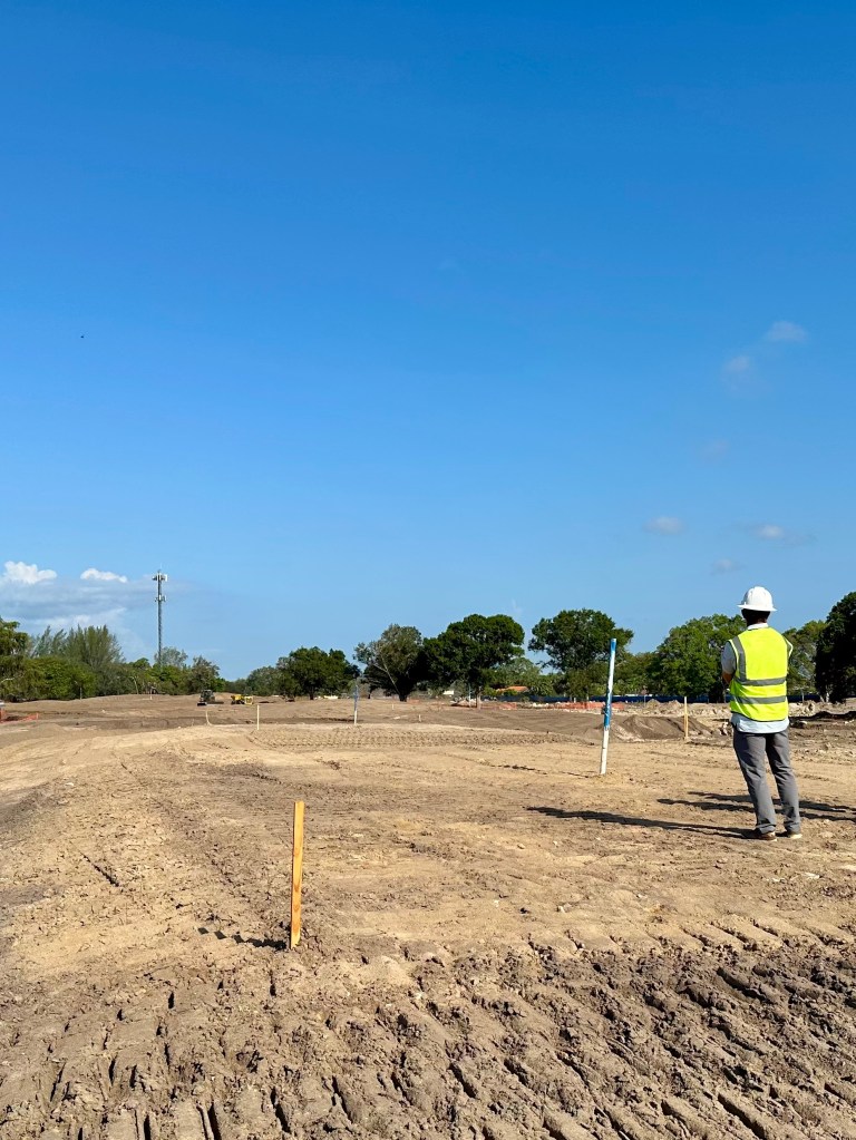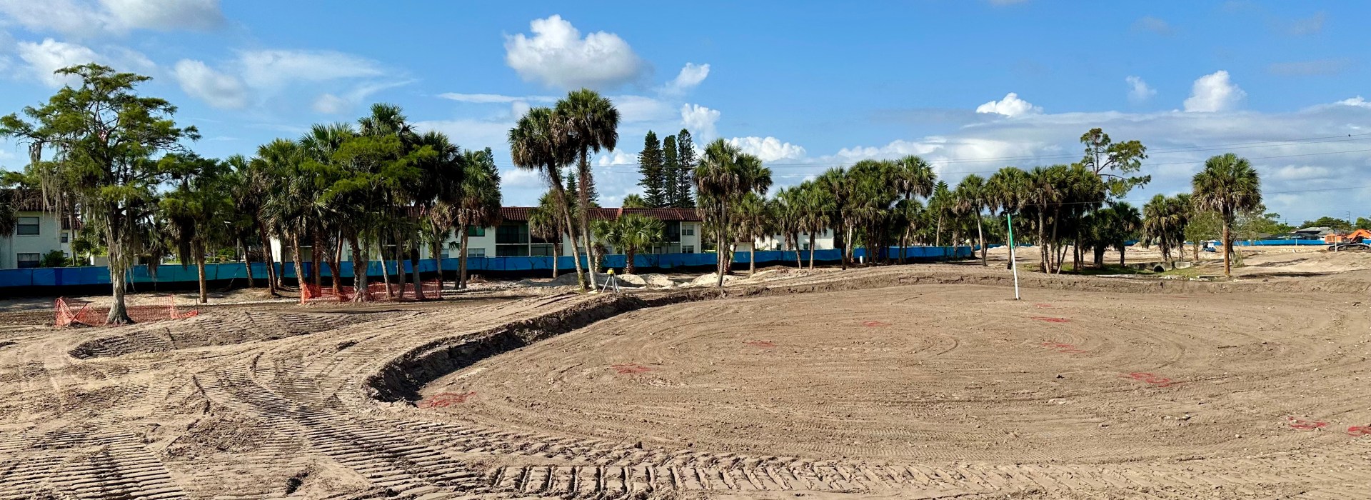 In advance of the rainy season, the crews laid Bahia grass sod in the existing swales to create “bioswales” between holes 2 and 8, as well as on holes 3, 5, and 6. As part of a larger drainage conveyance system, the bioswales will carry water away from the fairways and drain into channels that flow to the ponds on the golf course. The bioswales will help naturally filter and clean the water. The planned drainage conveyance system is a benefit to the course and surrounding community. Installation of the main line of the irrigation system is scheduled to start in June in preparation for grassing that begins in July.